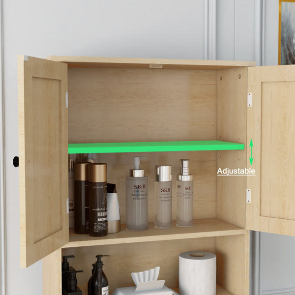 DB Over the Toilet Storage Cabinet Bathroom Shelves with 2 Rattan Doors Adjustable Shelves Open Storage Made of Wood and MDF