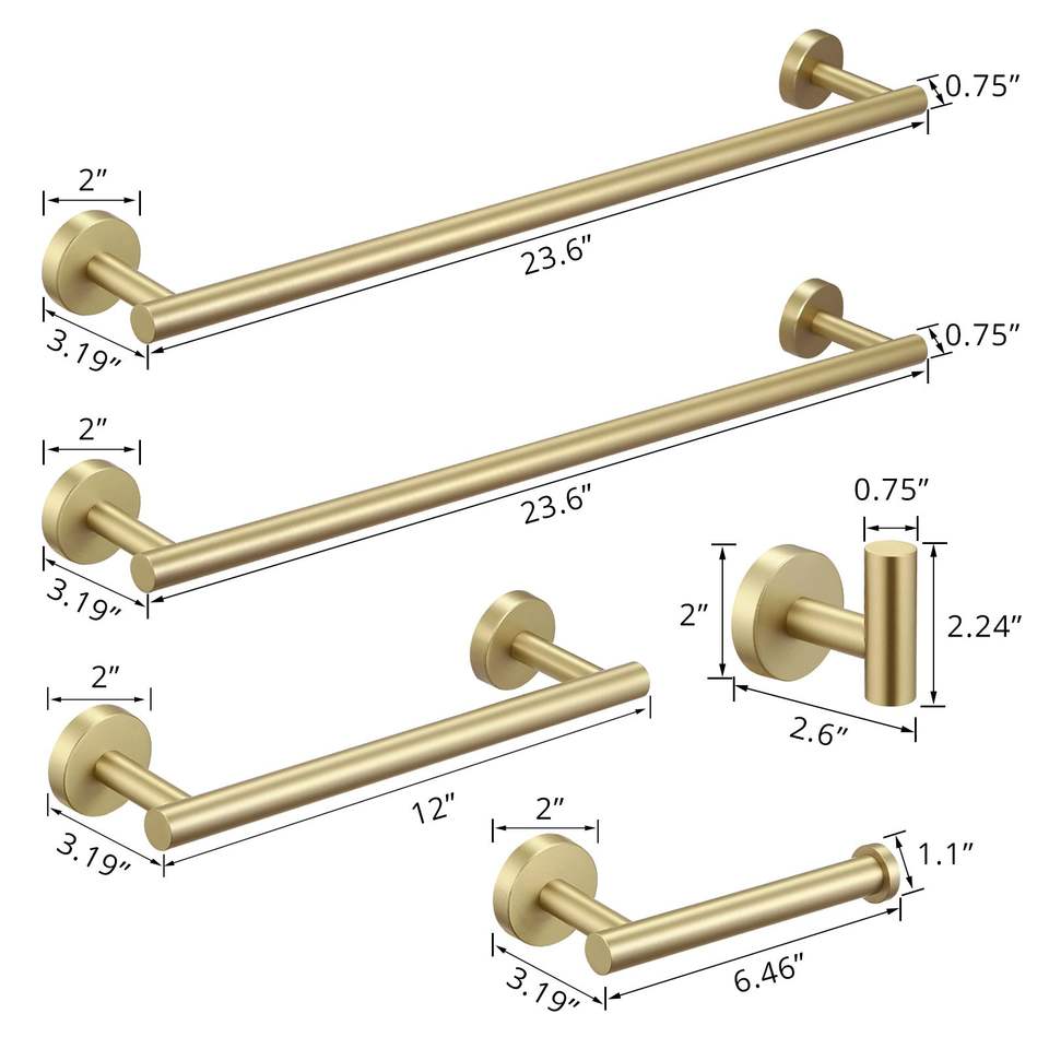 DB Premium Stainless Bathroom Hardware Accessories Set 5-Piece Towel Bar Square Chrome-Finished Metal Wall Mounted for Home Use
