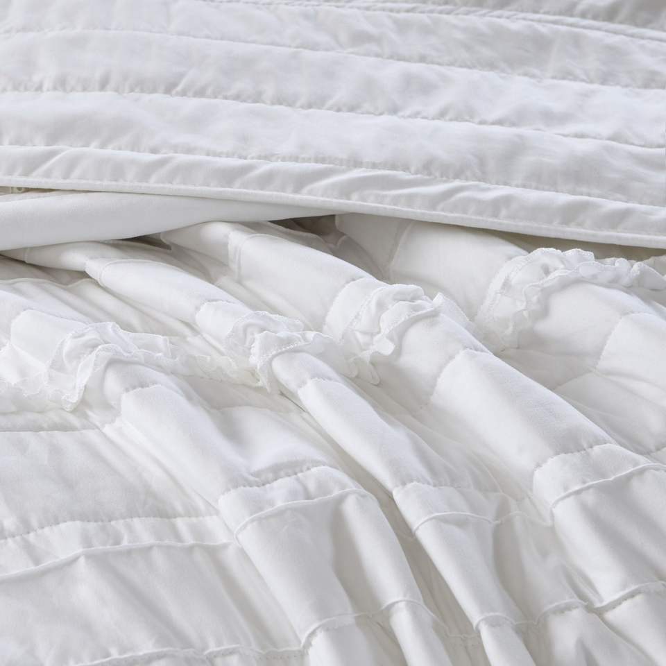 DB Queen 4-Piece Reversible Ruffle Quilt Set Throw Pillow Soft Cotton Floral Vintage Stylish Stitching Wedding Hotel Hospital
