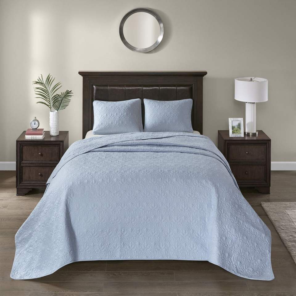 DB Reversible Bedspread Set Blue King Size Soft Cotton Polyester Featuring Blue Plain Patchwork Jacquard Quilted for Bedroom