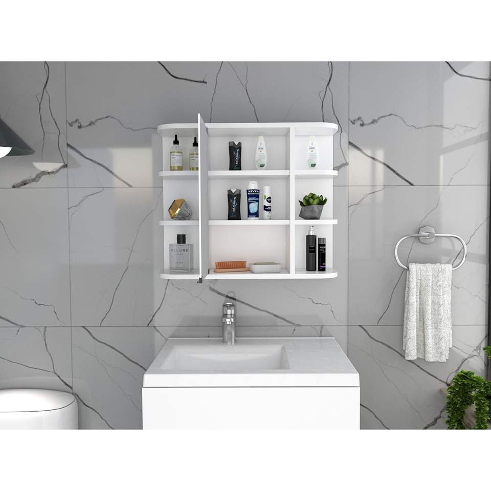 DB Roseburg White Medicine Cabinet with 6-Shelves and Mirror for Bathroom Storage