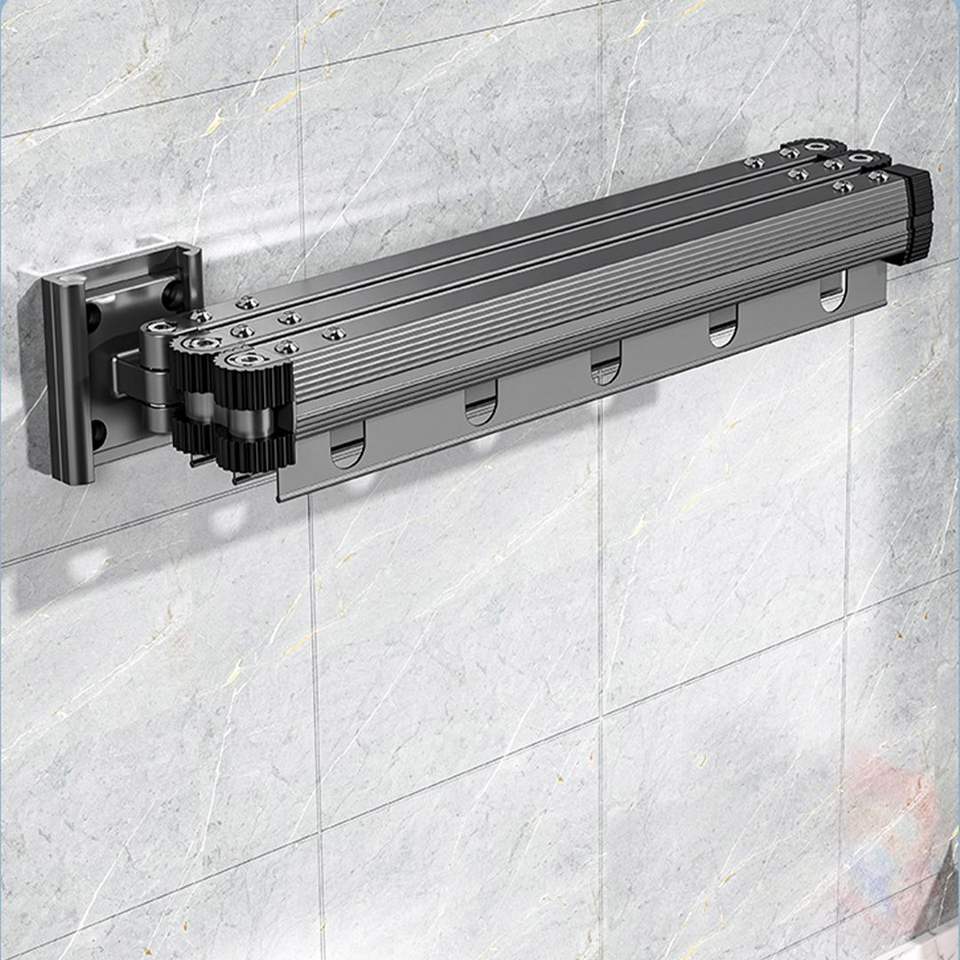 DB 127.5cm Retractable Wall-Mounted Dry Rack for Outdoor Clothing Space-Saving Foldable Hanger Aluminium Plastic Metal