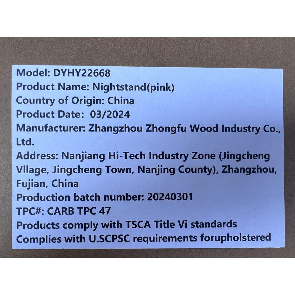 DB Solid Wood Nightstand 26.77''H Modern Design with One Drawer and One Shelf for Kids Adults Bedroom or Gym in Pink Color