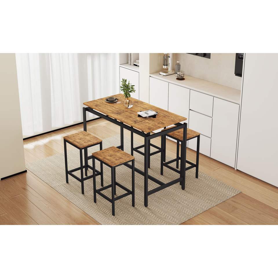 DB TREXM 5-Piece Modern Industrial Design Compact Bar Table Set Space-Saving Dining Room Furniture with Table Stools