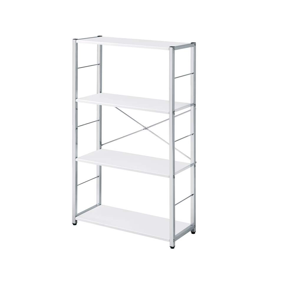DB Tennos White & Chrome Finish Bookshelf Living Room Furniture for Home Office Bedroom & Workshop Use