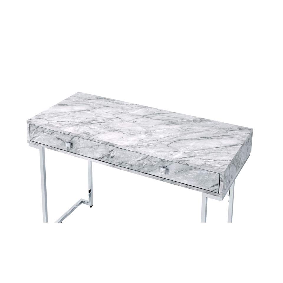 DB Tigress White Faux Marble Top & Chrome Finish Writing Desk Stylish Office Desk with Premium Finish