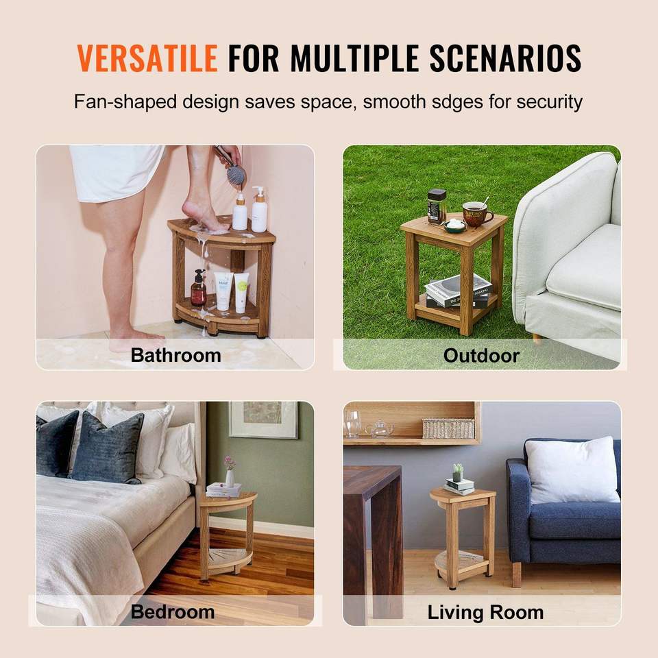 DB Wholesale 16.5\" Corner Shower Bench 12.8\" Radius 350 LBS Storage Shelf Faux Wood Grain Polystyrene Metal for Bathroom Use