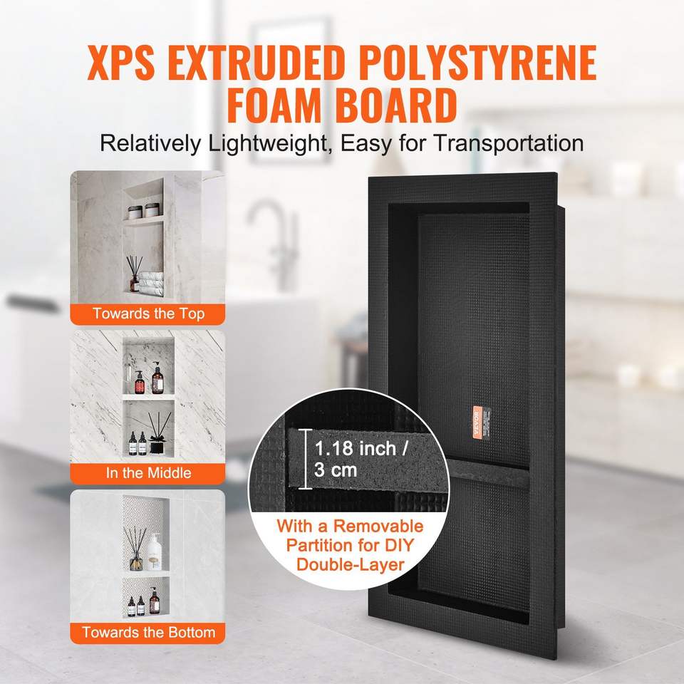 DB Wholesale 16\" X 32\" Tile-Ready Shower Niche Double Shelf Bathroom Organizer Square Corners Wall-Inserted Recessed Sealed Ni