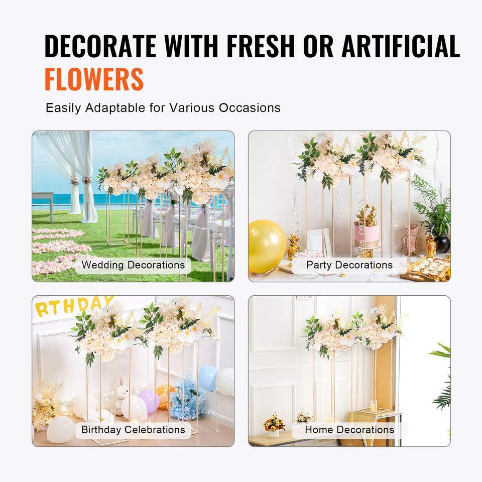 DB Wholesale 2pcs 31.5inch Gold Rectangular Floral Metal Vase Column High Wedding Flower Stand Geometric Centerpiece Stands