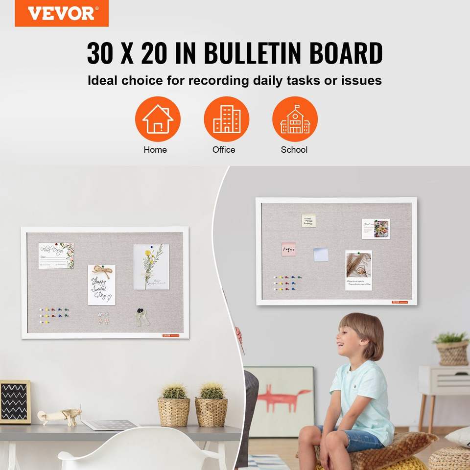 DB Wholesale 30\"x20\" White Linen Surface Cork Board Stylish Wood-framed Wall-Mounted Bulletin Board for Home Elegant Design