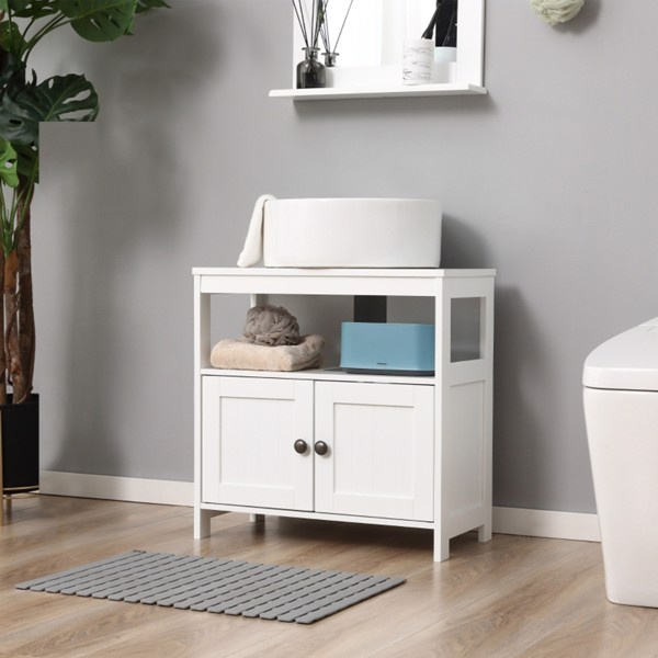 DB White-AS Double-Door Under Sink Storage Cabinet Bathroom Vanity with Ceramic Basin for Hotels