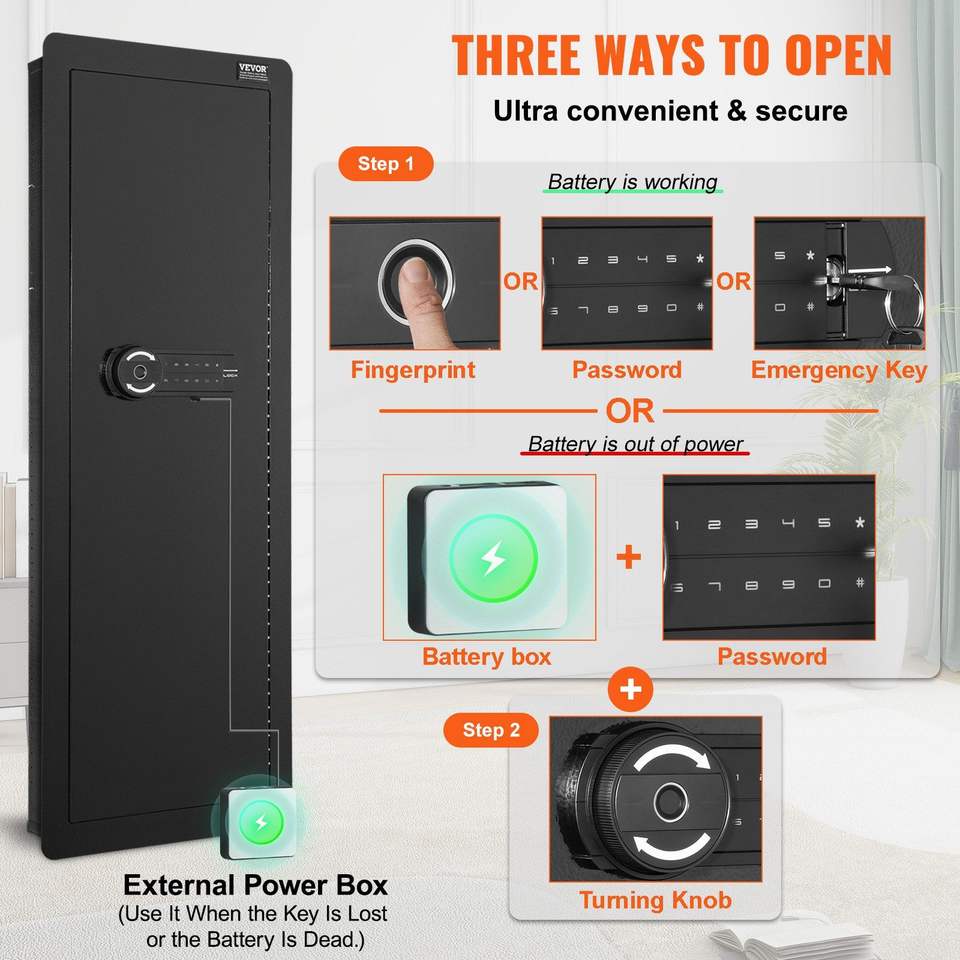 DB Wholesale 42.91\" Tall Wall Gun Safe 4-Tier Hidden Keypad Fingerprint Access 3 Removable Shelves 6 Key Holders Anti-Theft Q23