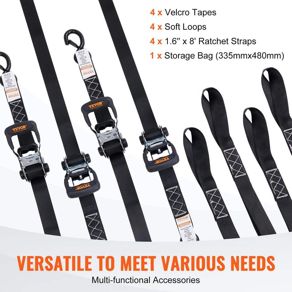 DB Wholesale 4PK Ratchet Tie Straps 5208 lb Max Break Strength Premium 1.6' X 8' Polyester Rachet Tie Downs Includes Padded