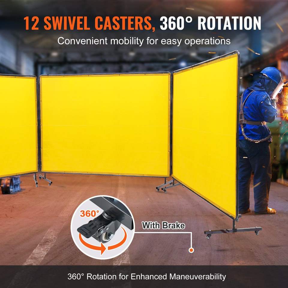 DB Wholesale 6' X 8' 3-Panel Flame-Resistant Vinyl Welding Curtain Screens Welding Screen Frame for Repair Use
