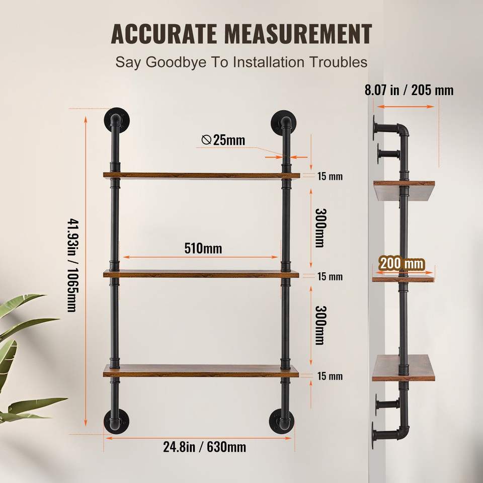 DB Wholesale Industrial Pipe Shelf 3 Tier 24x7.87in Wall-Mount Storage for Kitchen Bedroom