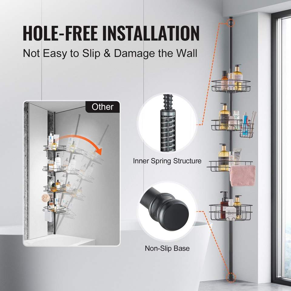 DB Wholesale Tension Pole Shower Corner Caddy 42\" to 114\" High Rust-Proof Stainless Steel Bathroom Corner Shelf