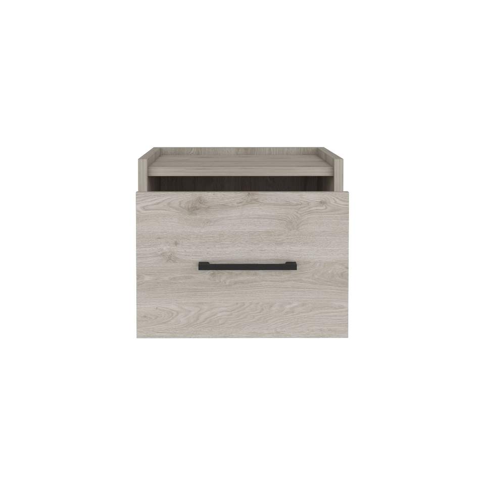 DB Yorktown Modern Light Gray Floating Nightstand Solid Pine Wood Handy Drawer Surface Space-Saving Design for Apartment Use