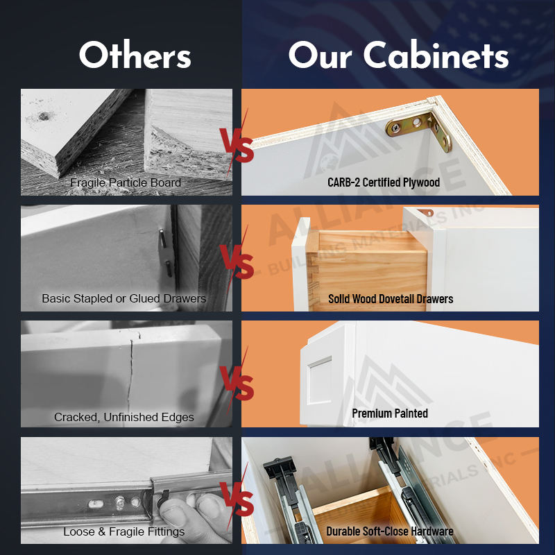 DB12-DB36 White Painted 3 Drawer Base Cabinet Hot Pick Premium Solid Wood Cabinets In-Stock Cabinets From USA Local Warehouses