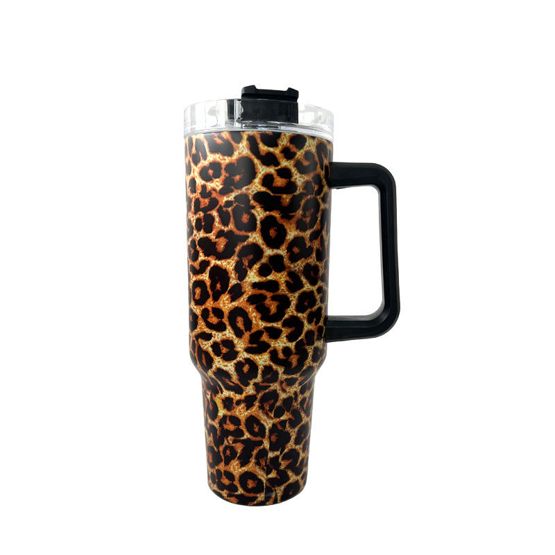 DD1744 Leopard 40 oz Boba Adventure Classic Stainless Steel Travel Mug with Handle and Straw Vacuum Insulated 5 Colors