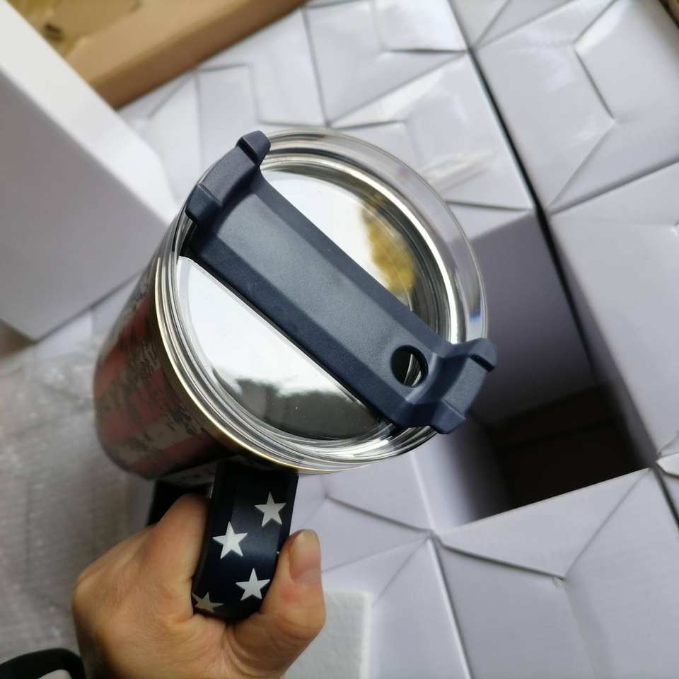 DD2791 40 oz Stainless Steel Tumbler with Handle Lid and Straw Travel Car Mug Lacquer USA National Flag 12-24hr Thermal