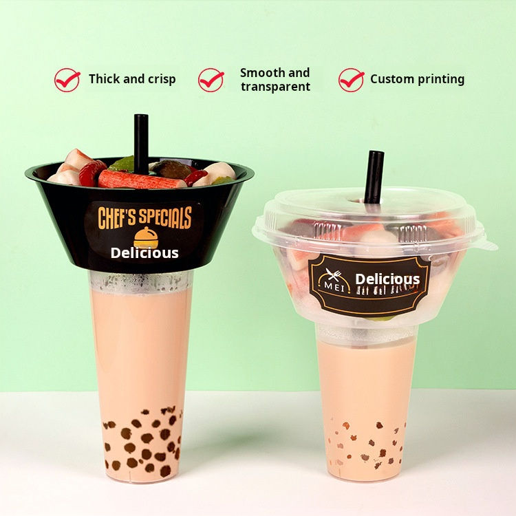 DD2805 Stadium Snacks Top Bowl for French Fries Reusable Plastic Drink and Snack Holder Cups with Straws