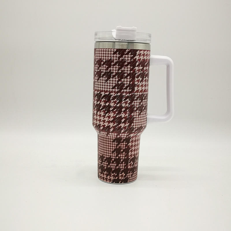 DD2973 New Checked Printed Adventure Cup Stainless Steel Insulated Tumbler Handle Straw High Capacity Travel 40 oz Flower Mug