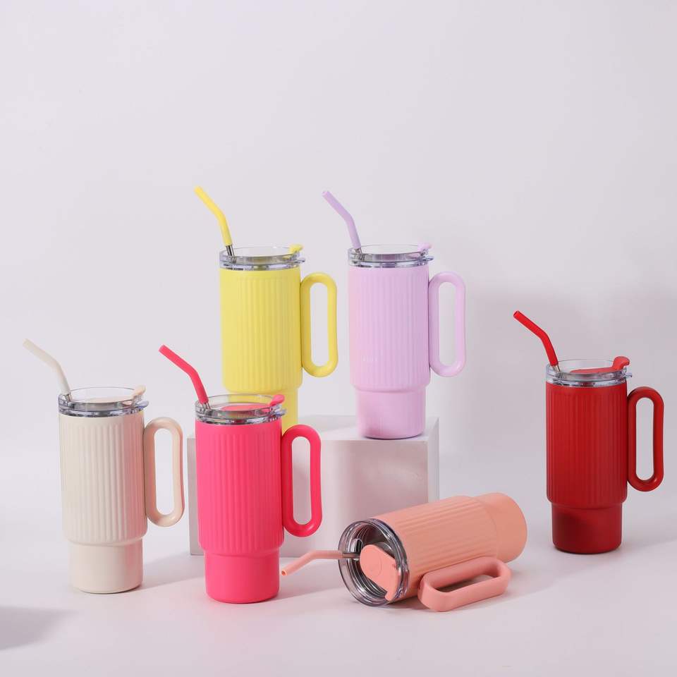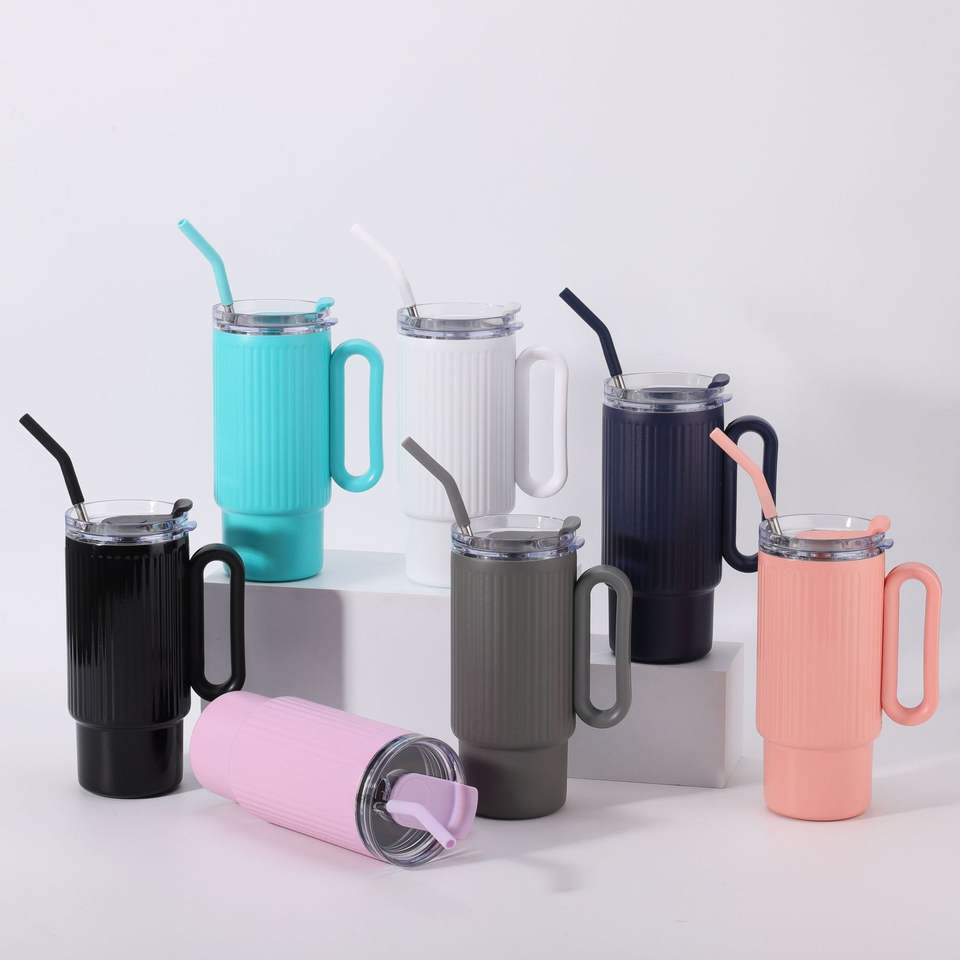 DD3982 Double Wall Vacuum Insulated Stainless Steel Cup Travel Keep Cold Tumbler with Handle and Straw 40 oz Twist on 3 Way Lid