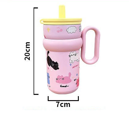 DD4388 Wholesale 540ml Double Wall Vacuum Insulated Child Cartoon Cute 316 Stainless Steel Tumbler Mug Bottle With Straw Handle
