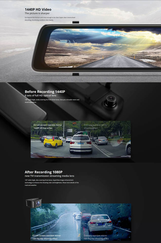 DDPAI Mola E3 Rearview Mirror Dashcam 2K Ultra HD 1440P 1080P 128GB 7Inch Touch Screen Dual Lens Night Vision Video Recorder GPS