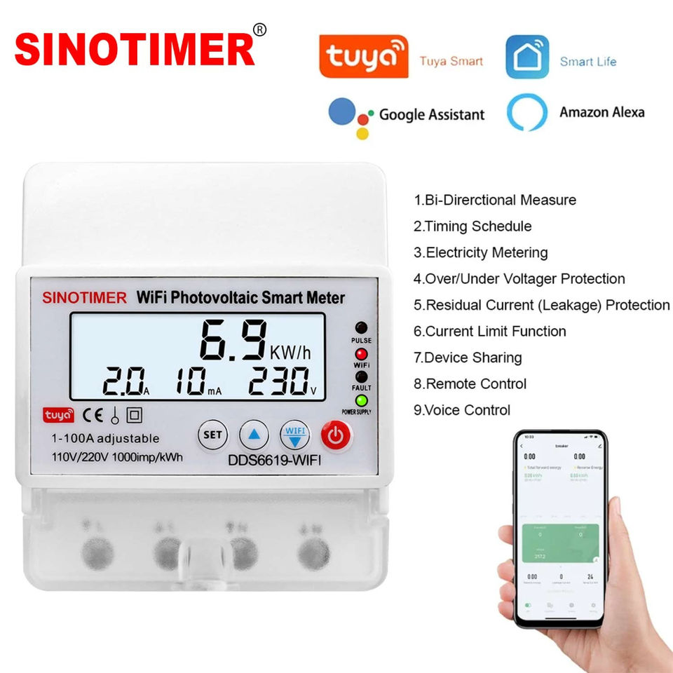 DDS6619-WIFI 100A Circuit Breaker Wi-Fi PV Smart Meter with Timer Remote Control OverUnder Voltage Current Protector Leakage Z31