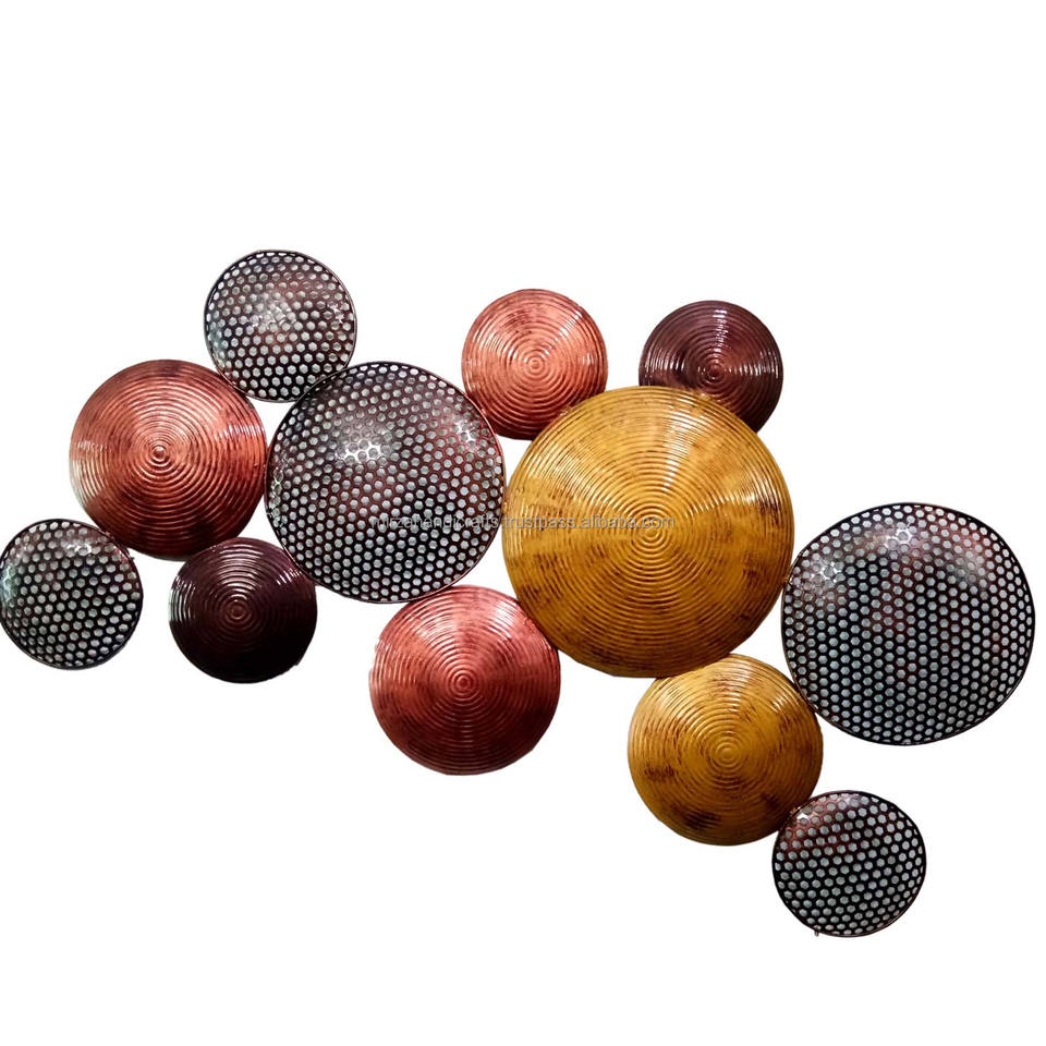 DECORATIVE ROUNDED MULTICOLOR PLATES IRON WALL ART