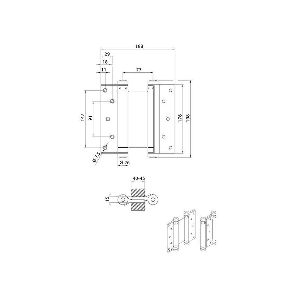 DENI Swing door hinges steel galvanised Size 39 Length 175mm Door thickness 40-45mm