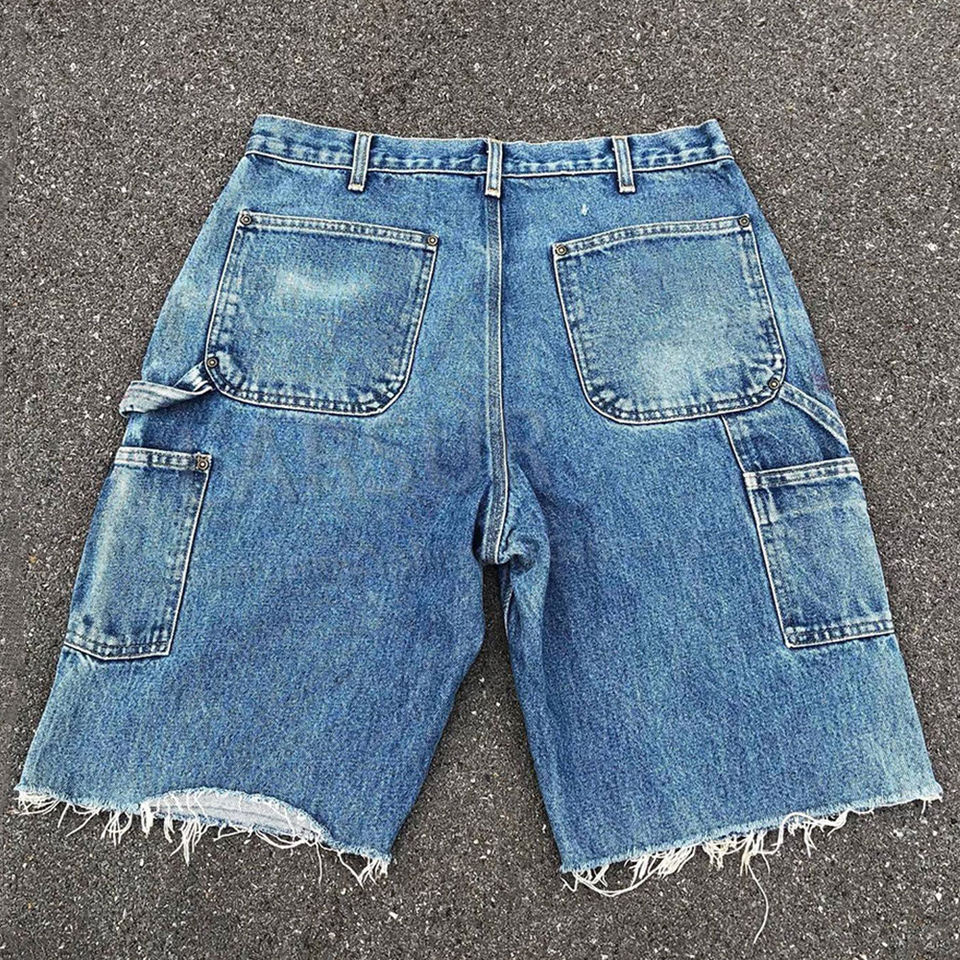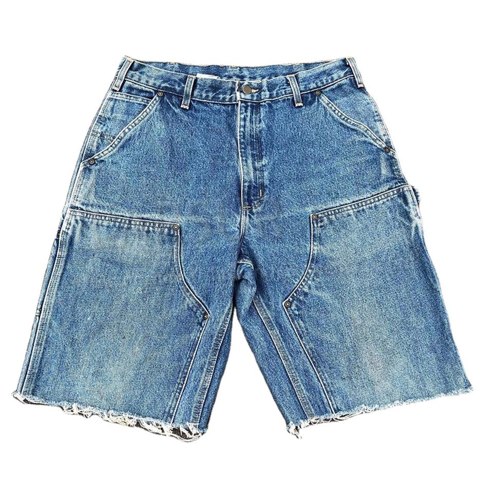 DENIM Distressed Jeans Shorts Wash Jorts Baggy Double Knee Carpenter Cargo Shorts Denim Work Shorts Pant Men