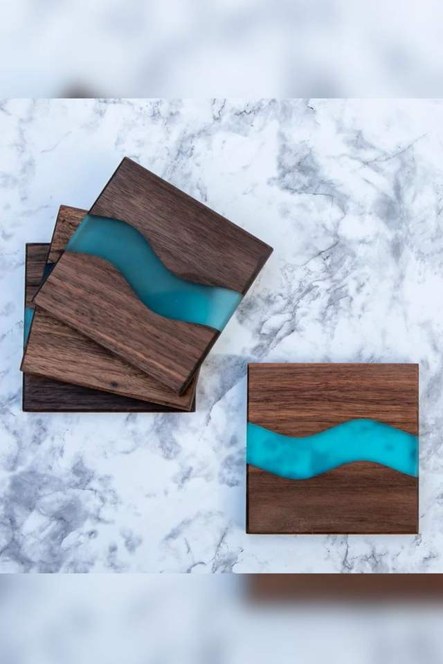 DESIGNED GARDEN-THEMED EPOXY RESIN AND WOOD COASTERS Set Stylish Cup Model Drink Coaster Good Price for Artisan Craft Use