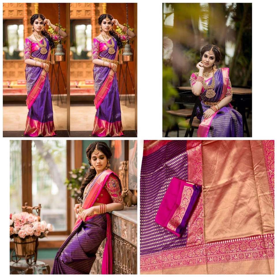 DESIGNER BANARASI SILK ZARI WEAVING WORK SAREE WITH UNSTITCHED BLOUSE PURPLE