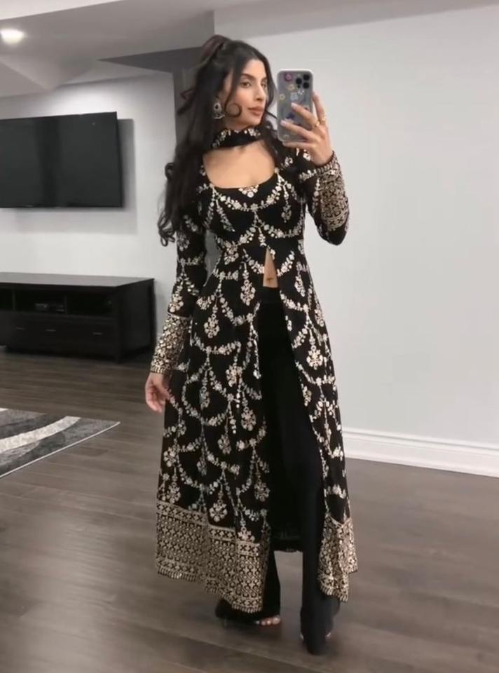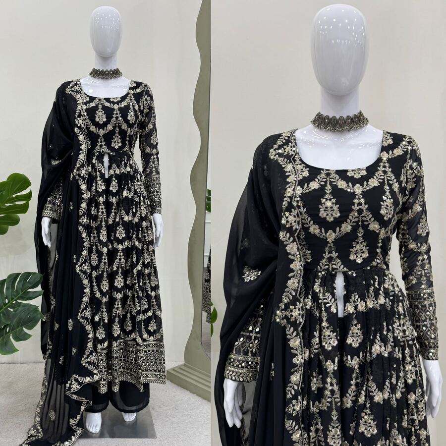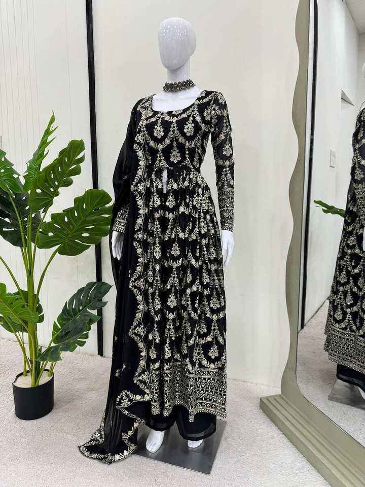DESIGNER CHINON SILK EMBROIDERY SEQUENCE WORK GOWN WITH DUPATTA RED