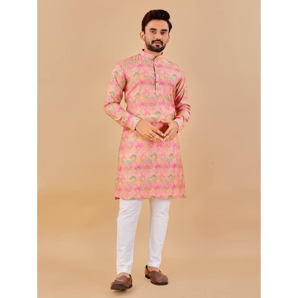 DESIGNER COTTON FOIL PRINT WORK MENS KURTA PAJAMA