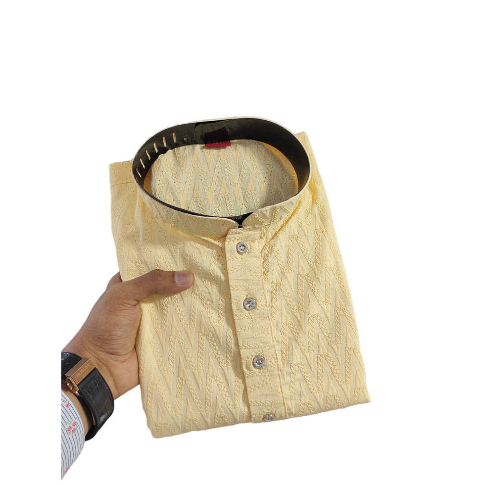 DESIGNER COTTON THREAD EMBROIDERY WORK READY to WEAR MENS KURTA WITH PAJAMA Achkan Bandhgala Sherwani