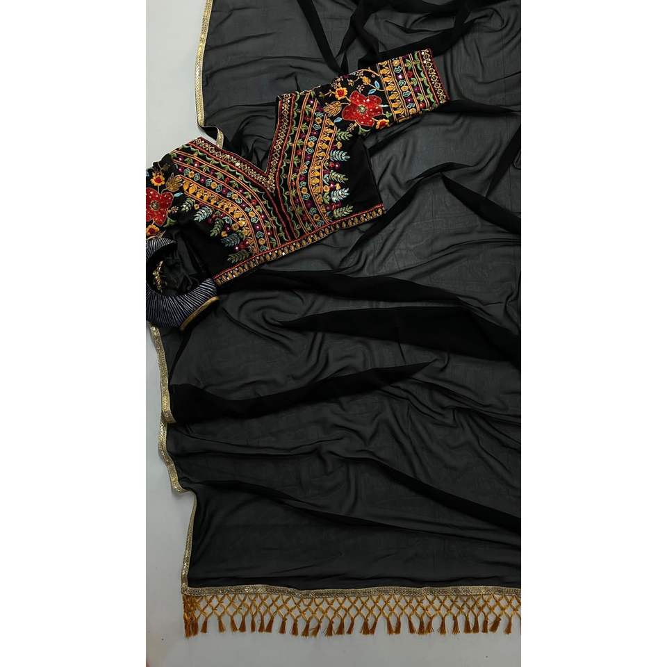 DESIGNER FACNY SAREE SEQUENCE and EMBROIDERY WORK ULL STITCHED BLOUSE BLACK