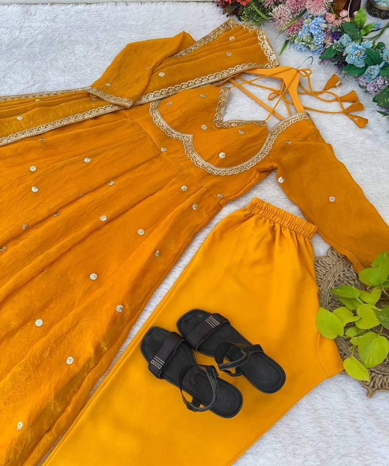 DESIGNER FENDY SATIN RAMBO SEQUENCE EMBROIDERY COTTON WORK GOWN BOTTOM DUPATTA WEDDING WEAR QUICK DRY KURTI WHOLESALE PRICE