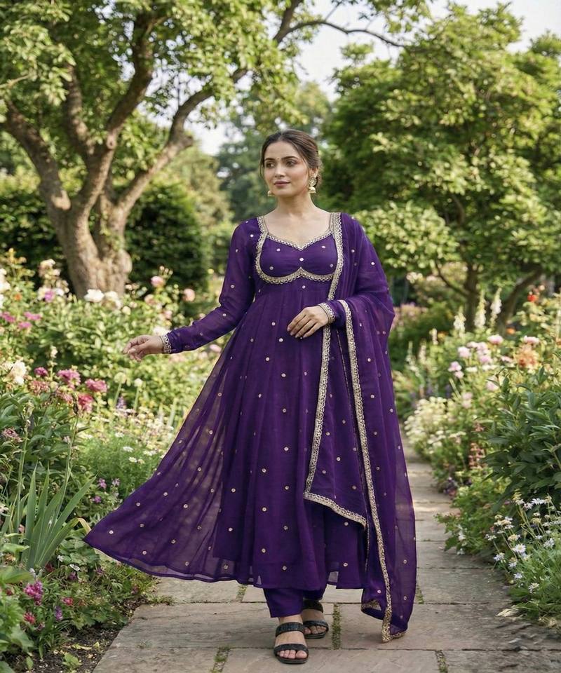 DESIGNER FENDY SATIN RAMBO SEQUENCE EMBROIDERY WORK GOWN BOTTOM DUPATTA WEDDING WEAR WHOLESALE PRICE ETHNIC GARMENT Multi Color
