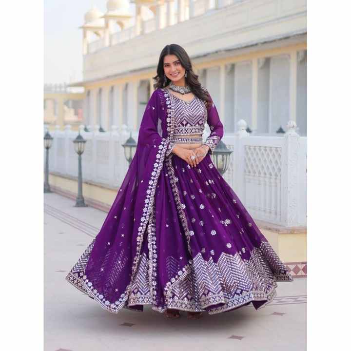 DESIGNER GEORGETTE EMBROIDERY SEQUENCE WORK LEHENGA CHOLI WITH DUPATTA and BELT PURPLE