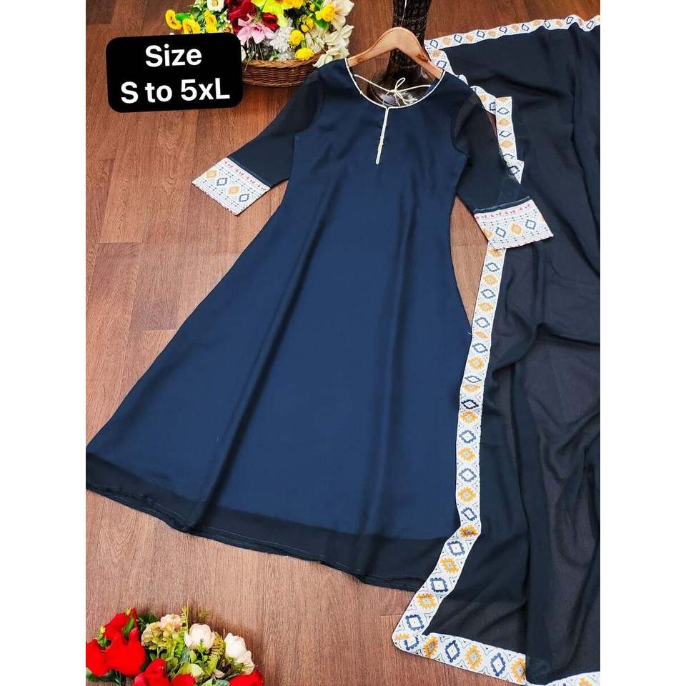 DESIGNER GEORGETTE LACE WORK TOP WITH DUPATTA NAVY BLUE