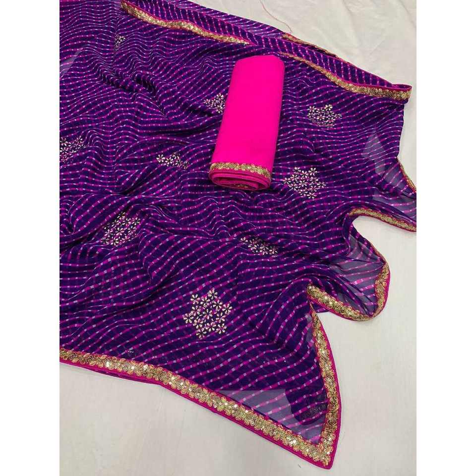 DESIGNER GEORGETTE MIRROR WORK WITH BUTTI WORK SAREE WITH UNSTITCHED BLOUSE PURPLE