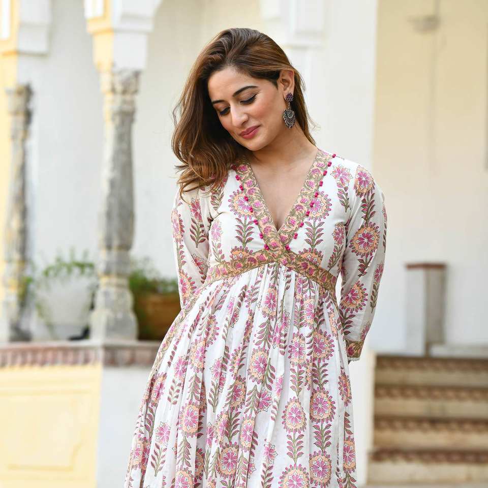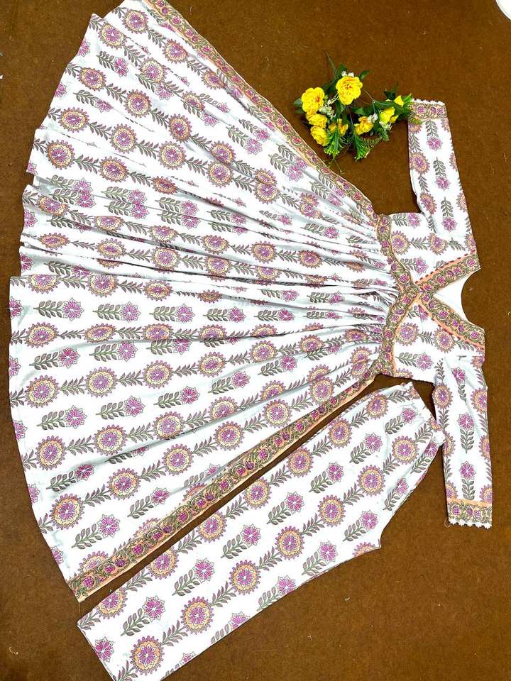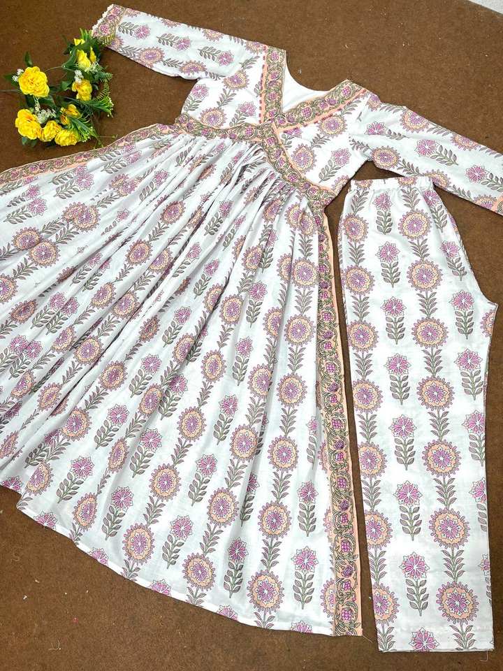 DESIGNER PARTY WEAR WHITE SUMMER-BLOOMING FLOWERS NAIRA CUT TOP -PENT