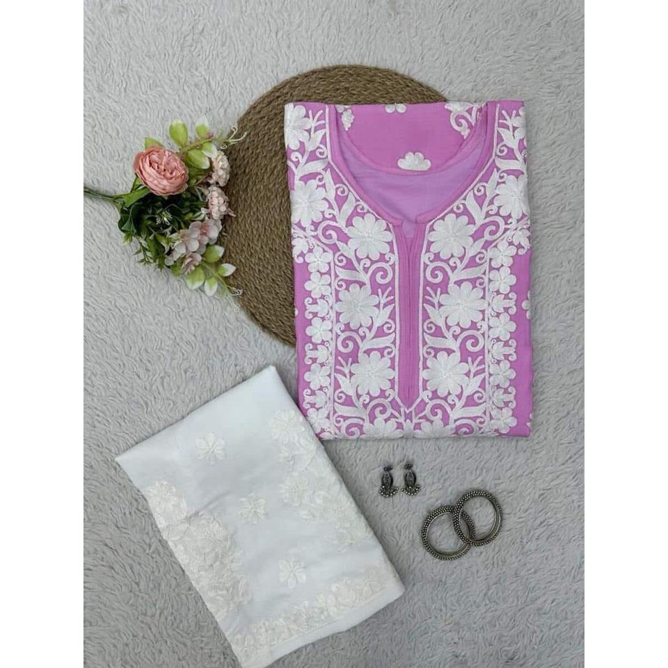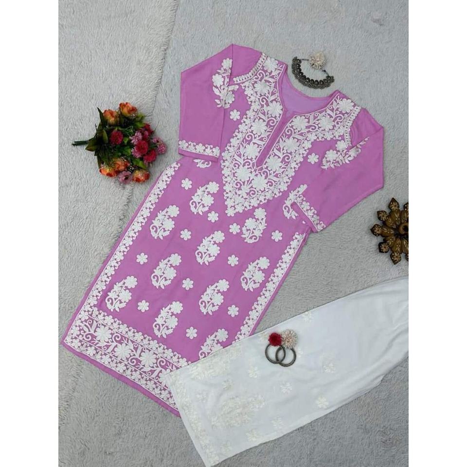 DESIGNER RAYON CHAIN STITCH TOP WITH PALAZZO PINK