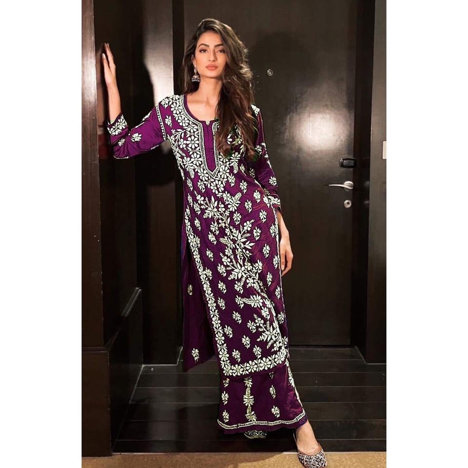 DESIGNER RAYON EMBROIDERY WORK KURTI WITH PALAZZO WINE