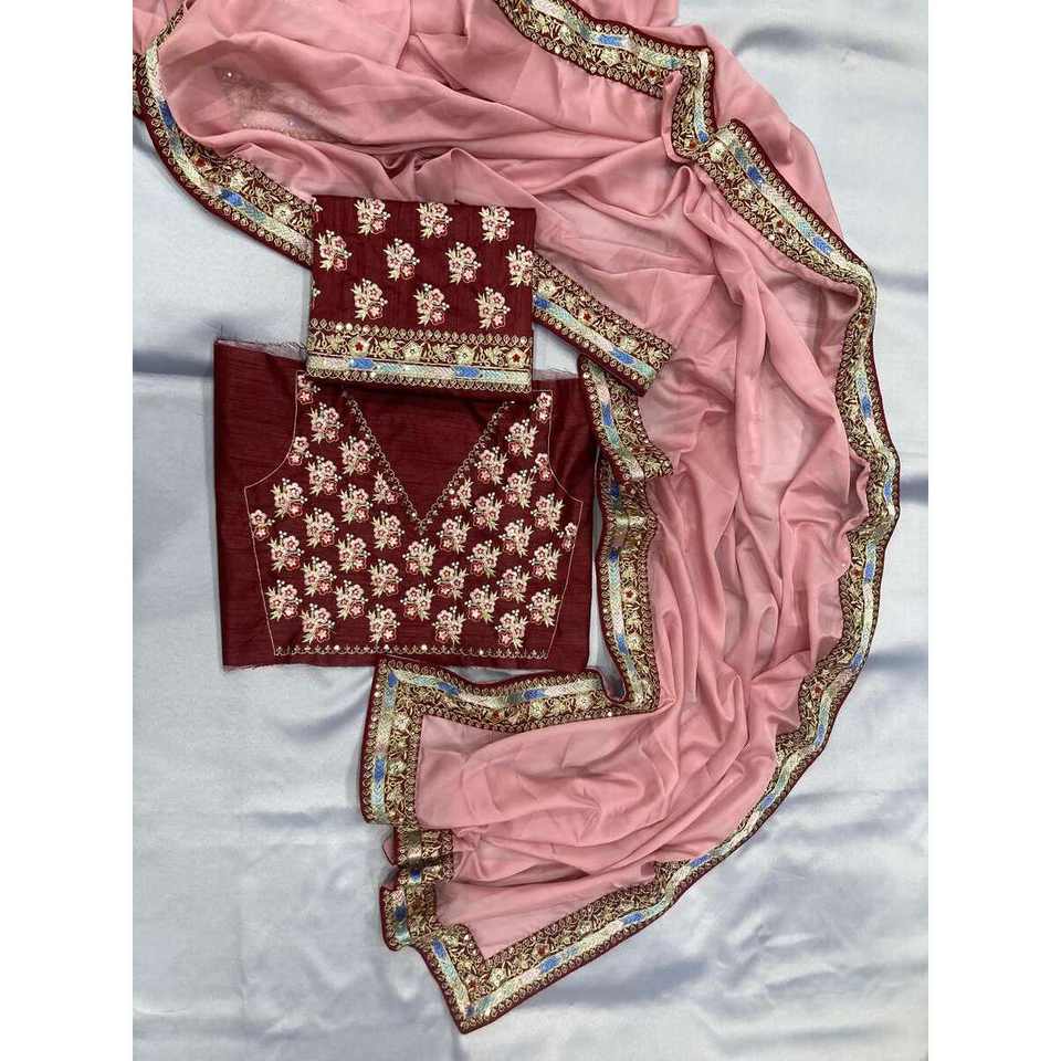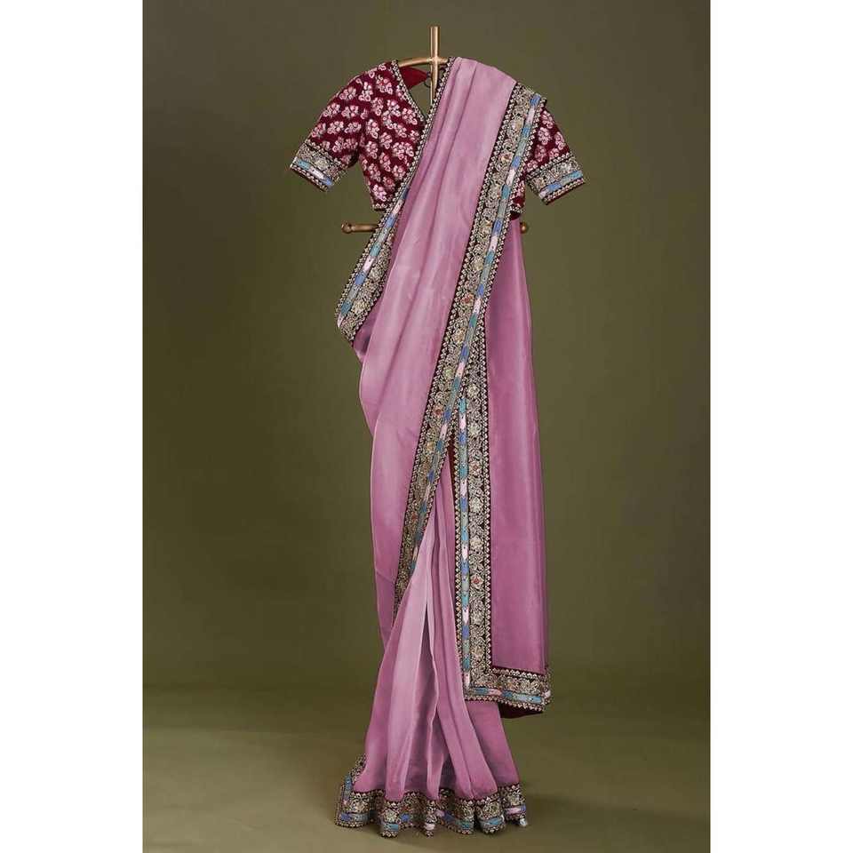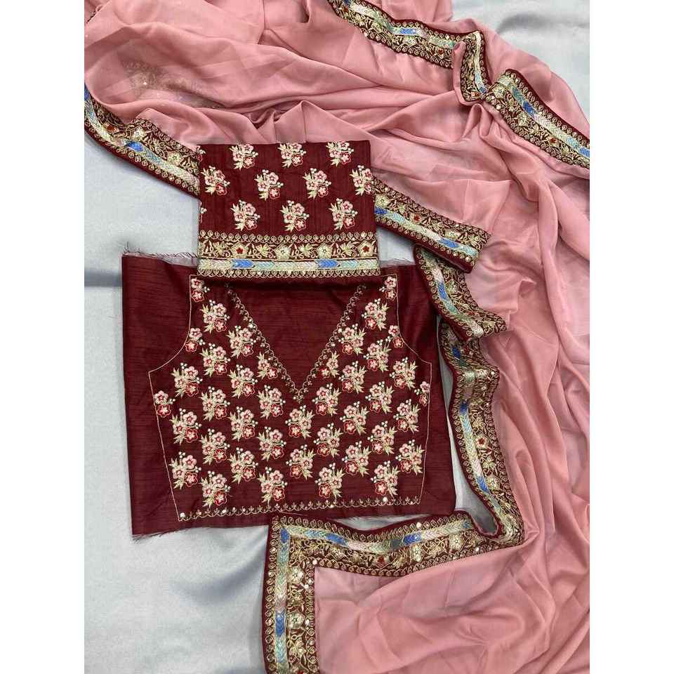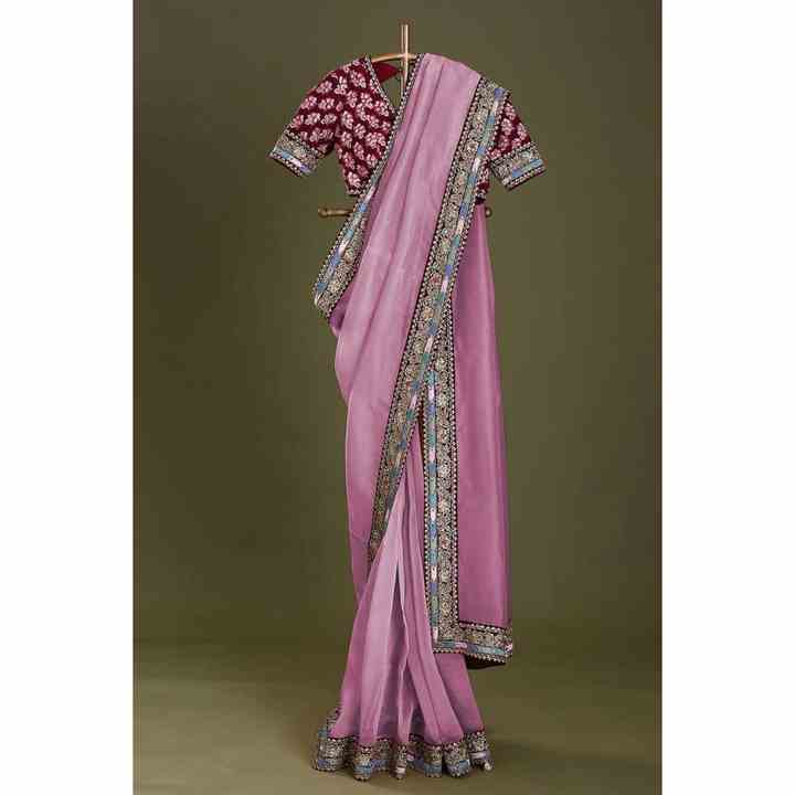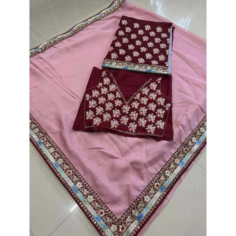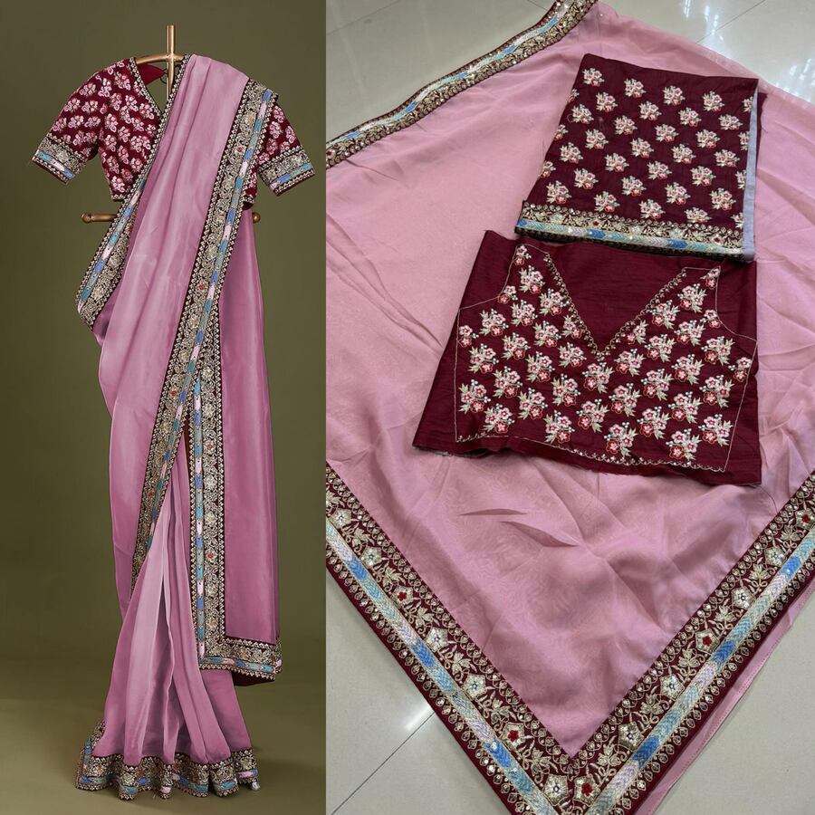 DESIGNER TABBY ORGANZA SILK EMBROIDERY SEQUENCE WORK LACE BORDER SAREE WITH UNSTTICHED BLOUSE