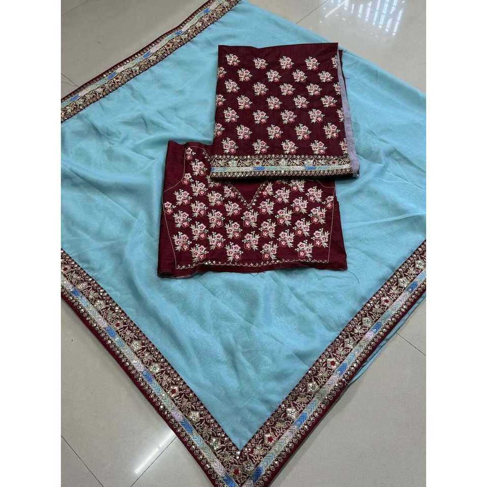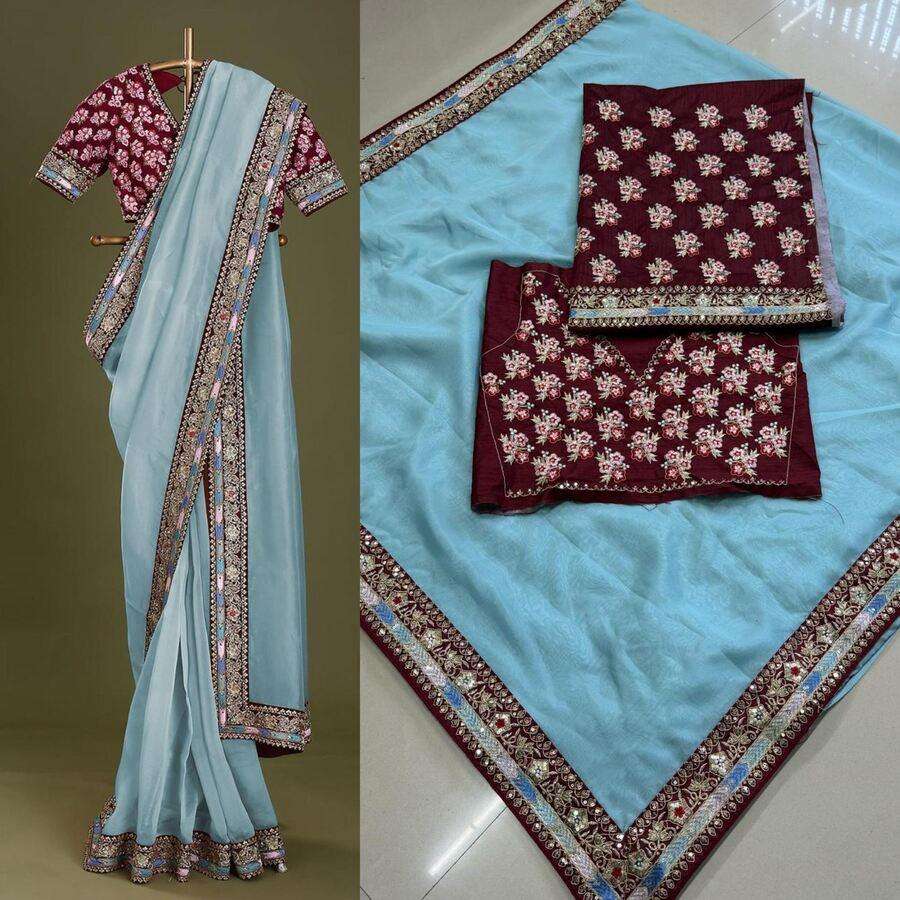 DESIGNER TABBY ORGANZA SILK EMBROIDERY SEQUENCE WORK LACE BORDER SAREE WITH UNSTTICHED BLOUSE