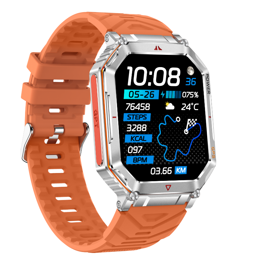 DF KR92 Smart Watch 2025 GPS AI GPT Voice Assistant LED Light Altitude Air Pressure Compass-Waterproof IP68 Android Square
